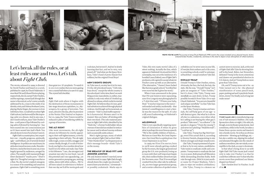 September 2021 LILI ANOLIK MERRICK MORTONWhen audiences first saw Fight Club, they had no idea they were gazing into a crystal ball of 21st-century masculinity
