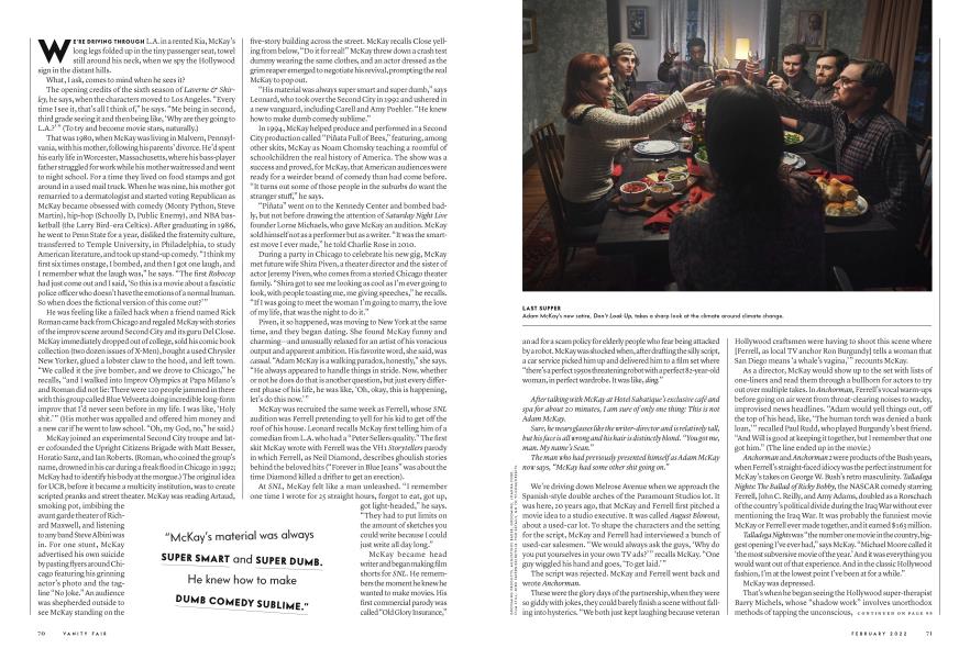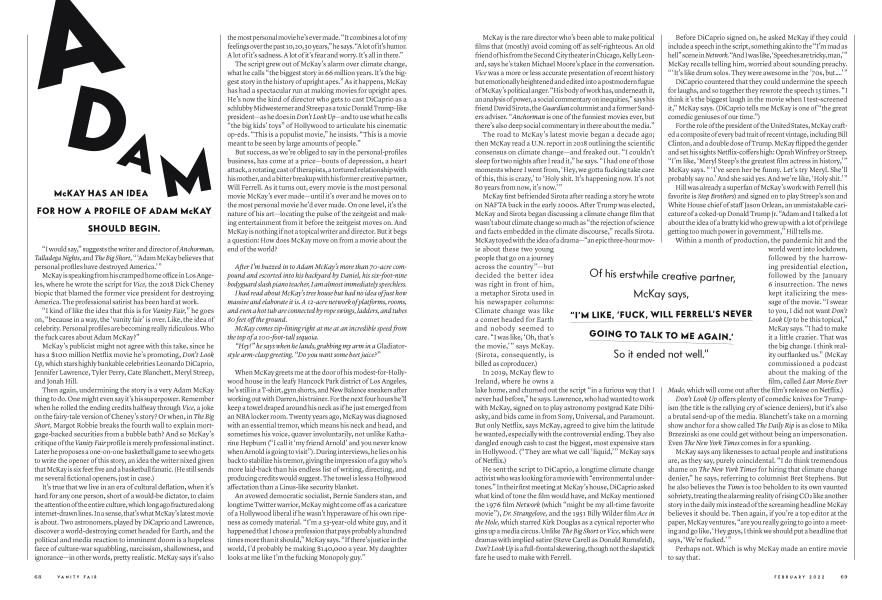 February 2022 JOE HAGAN SEBASTIAN KIMAdam McKay has an idea for how a profile of Adam McKay should begin.