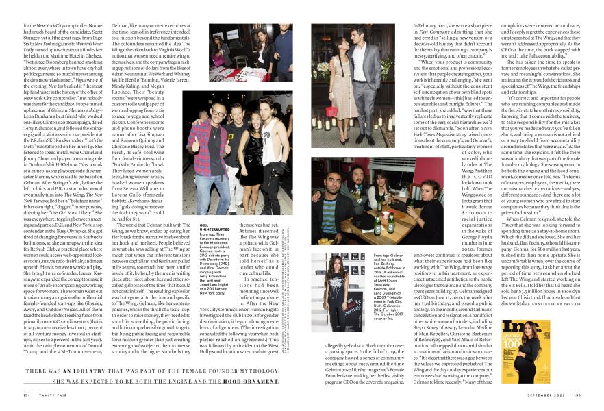 This was about the 10th such trip Gelman had taken over the last nearly two years since she left The Wing, the all-female, We Work-backed, pop feminist self-described coven of a coworking space that she cofounded in 2016. Gelman resigned in June 2020 as the pandemic set in, keeping all 12,000 of the company's members at home and their annual fees—up to $3,000 per person—suspended. The Wing shuttered the 11 locations it had opened over the course of three and a half years, and, as The Wall Street Journal reported, Gelman laid off all but 84 of its nearly 500 employees. (A handful of Wing locations remain open, as do outposts of its imploded backer, We Work.) At the same time, against the backdrop of the protests that summer, former employees, most of them young women drawn in by the company's mission of being a "utopia" for "women on their way," alleged mistreatment they experienced, some of which they said was by Gelman herself. And they called for change. That meant Gelman.