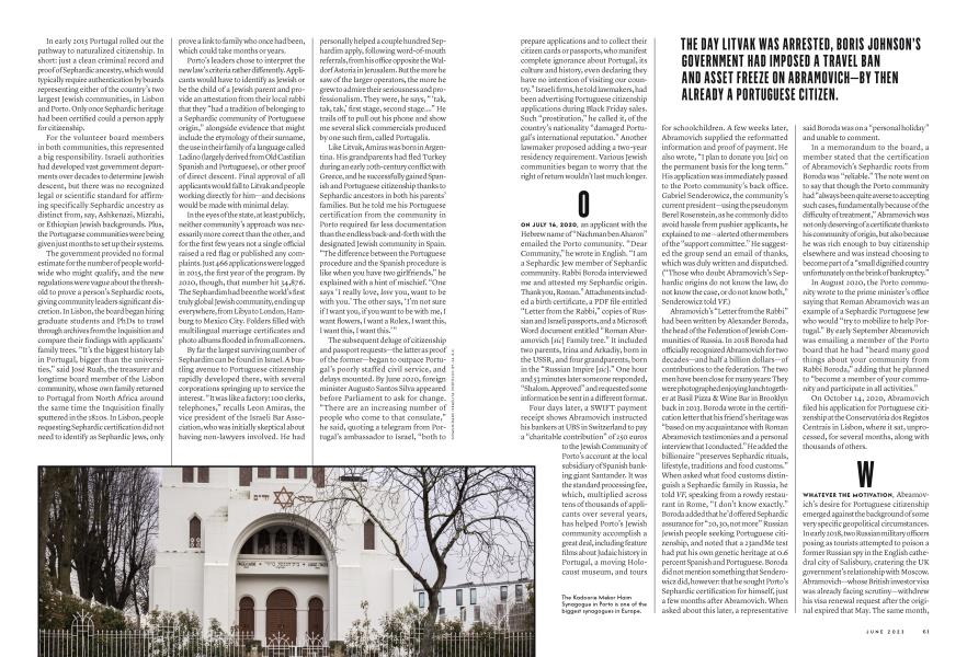 Sign In Not a Subscriber?Join NowIn 2015, Portugal opened its doors to foreigners whose Jewish ancestors had been expelled during the inquisition, Russian billionaire Roman Abramovich used his heritage to gain entry to the country—and an all-access pass to the EU—exposing deep flaws in a well-intentioned policy.